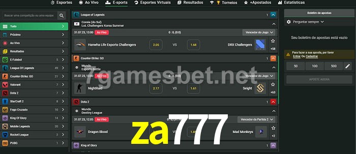 O za777 oferece uma grande seleção de opções de apostas em e-sports com probabilidades competitivas